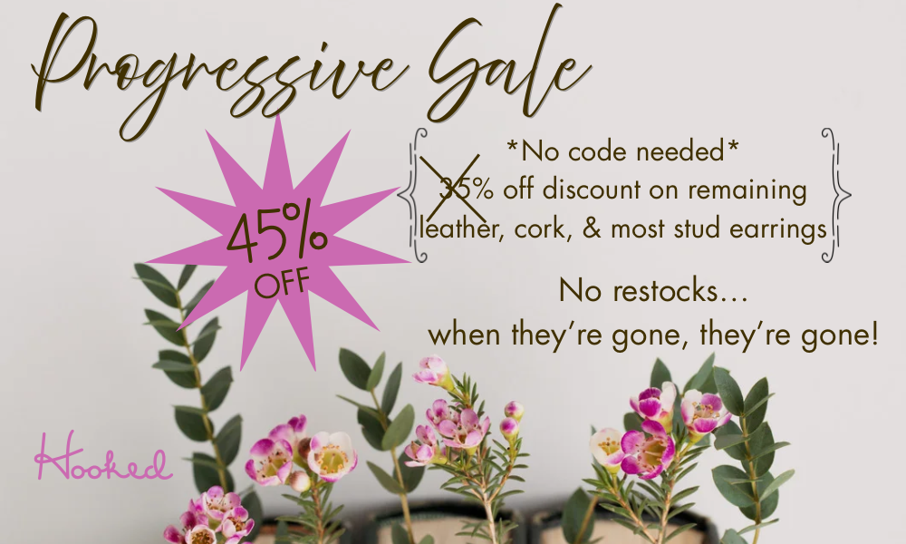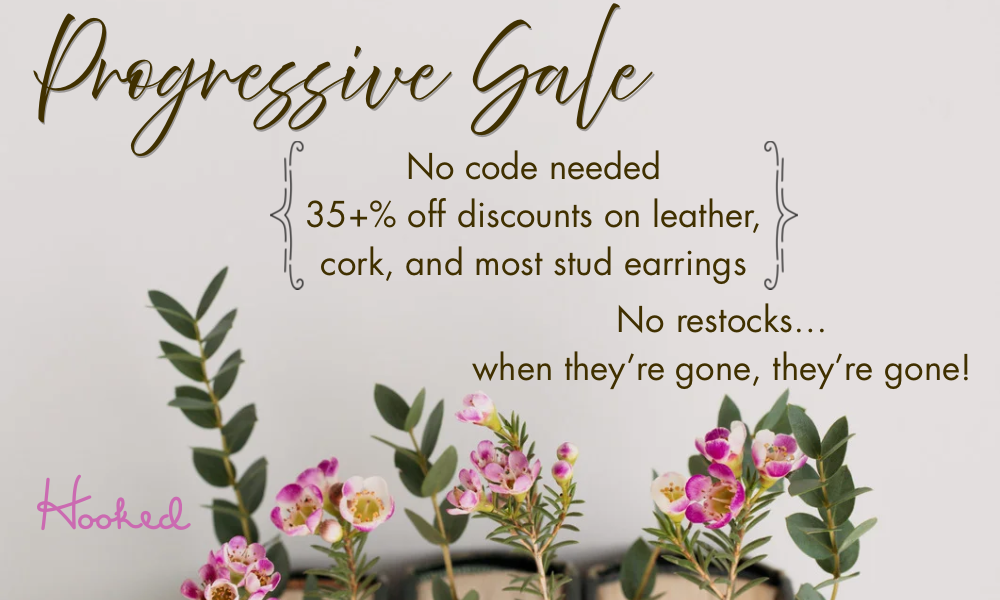 All leather earrings and many stud earrings on the website are officially heading into a progressive sale. Prices will keep dropping until theyβre gone.