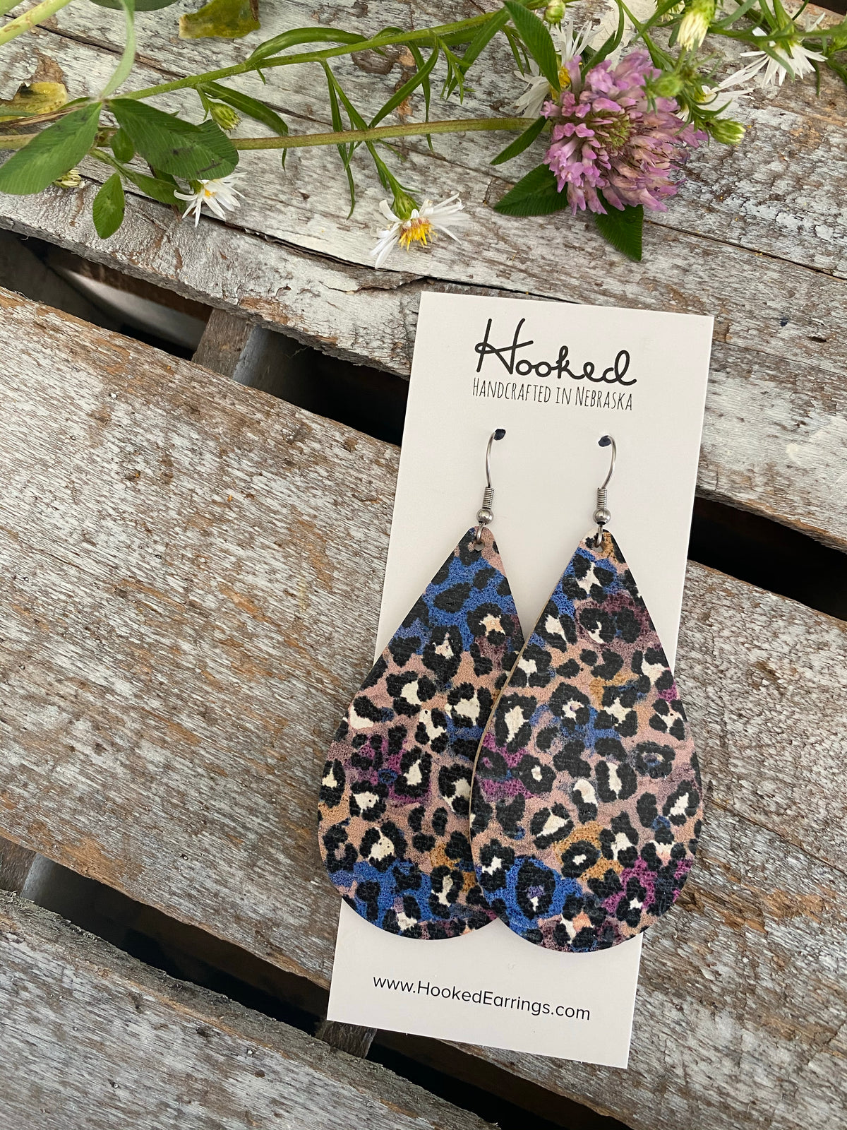 Blurple Leopard Cork Teardrops - Large