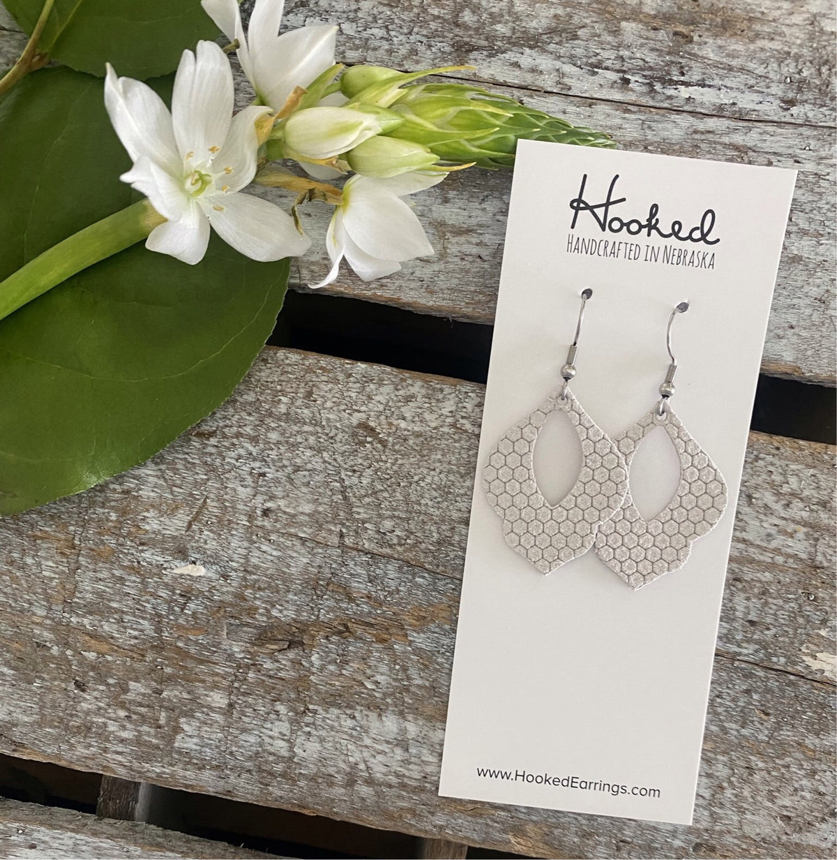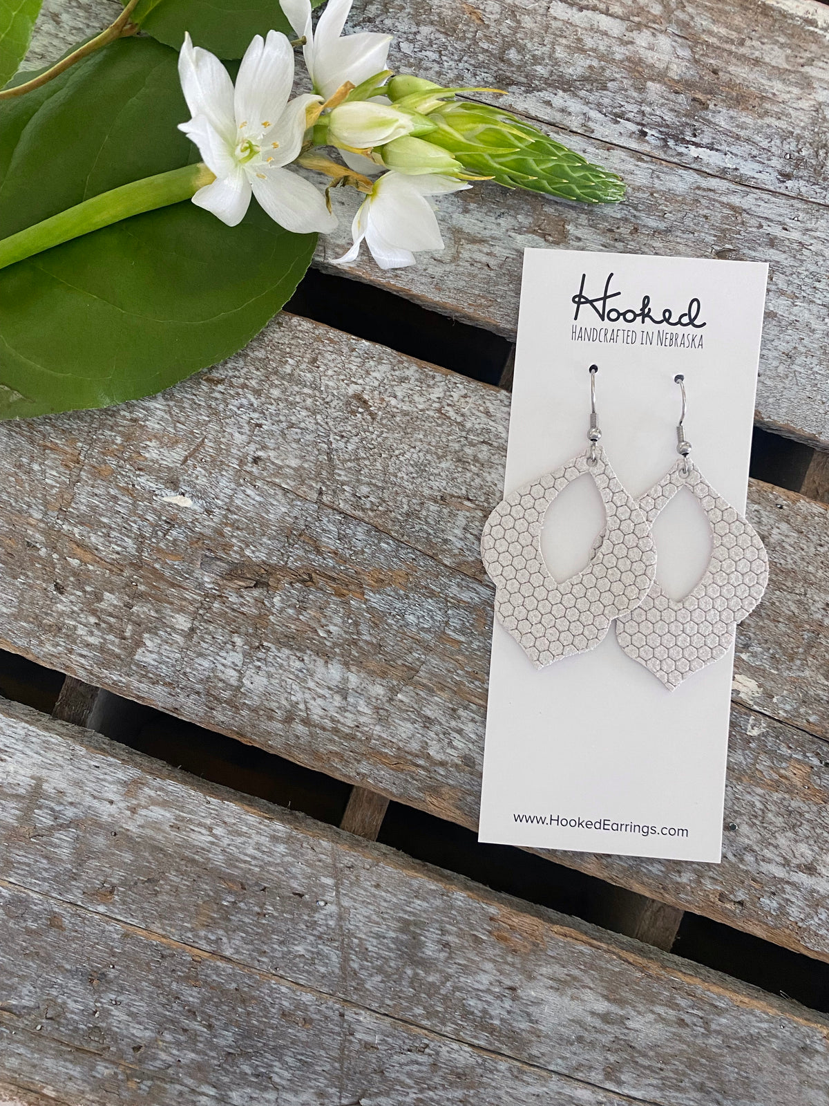 Cherry Blossom Hoop Earrings • White Teardrops