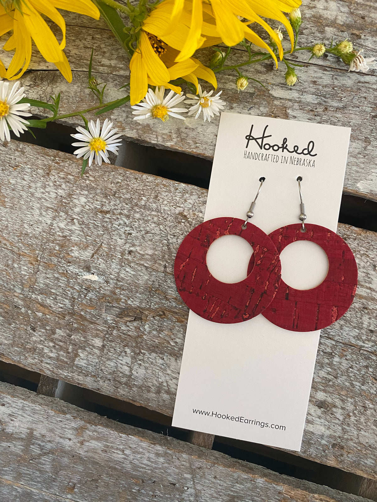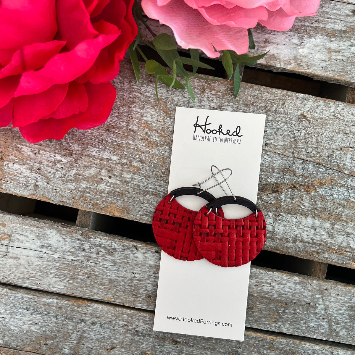 Cherry Red Rattan Circle Cutout Earrings - Waterproof, Pool Ready