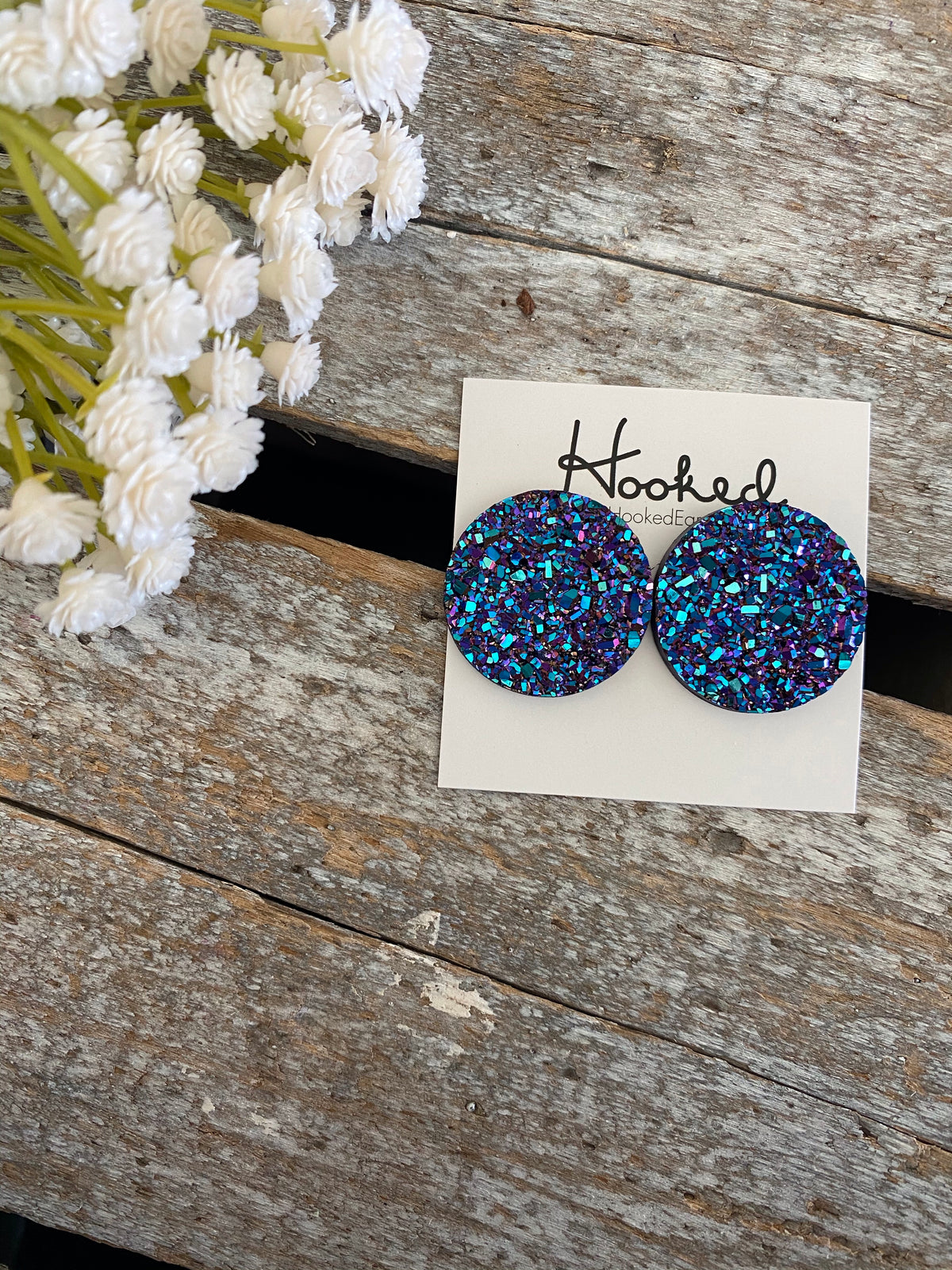 Dazzling Deluxe Druzy-Style Studs in Blue Green - 25mm