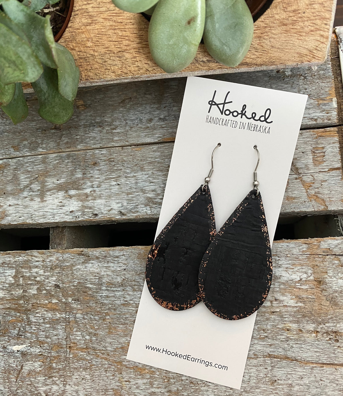 Glitter Edged Jet Cork Teardrops - Medium