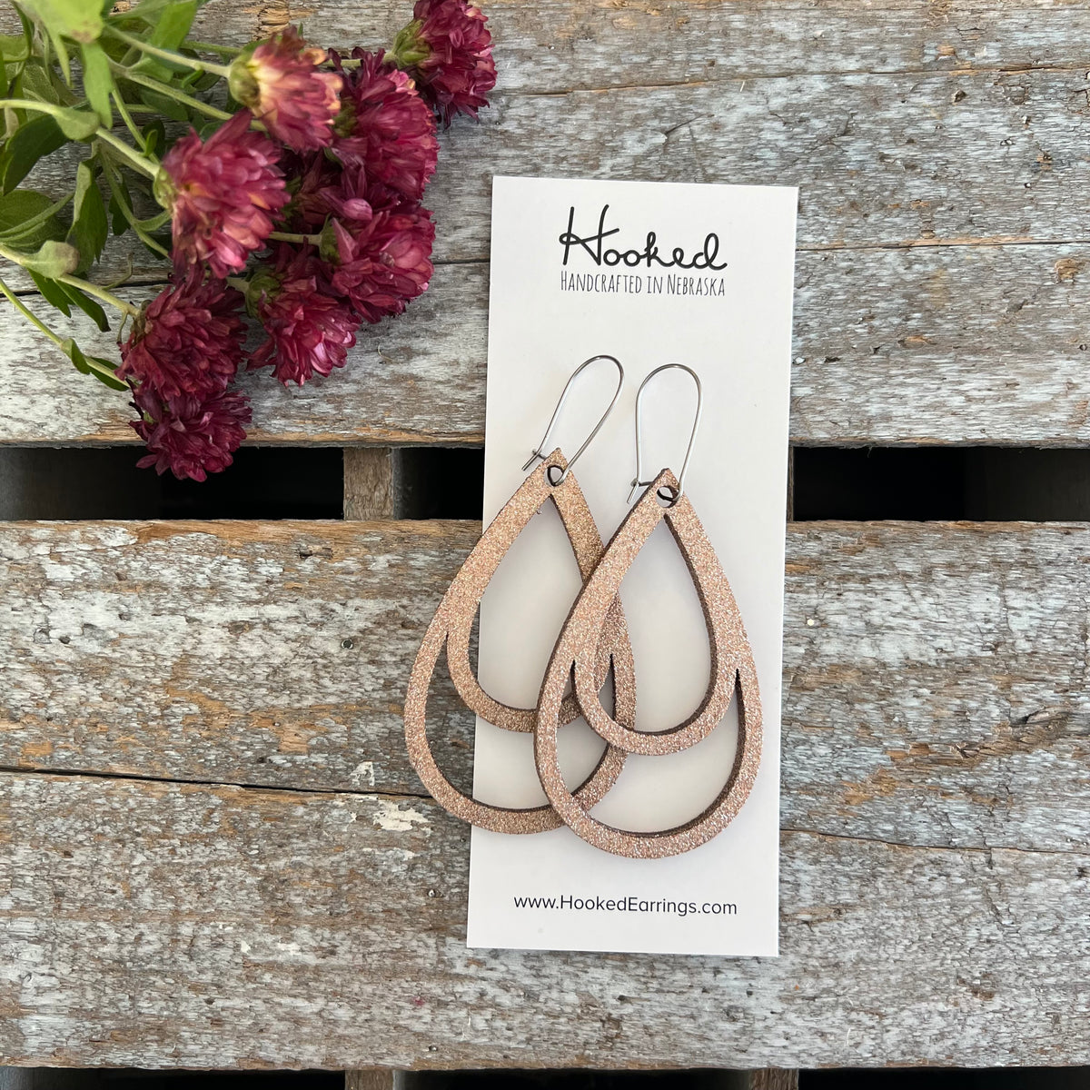 Glitzed Double Teardrop Wooden Deluxe Cutout Earrings - Medium/Large