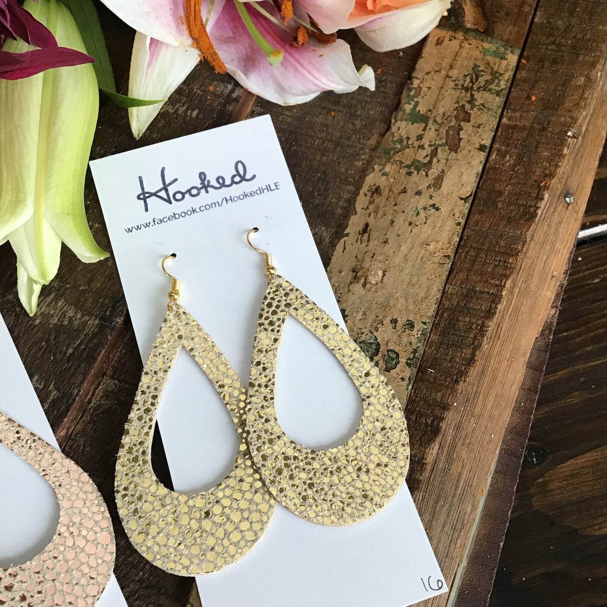 Gold Strand Cork Leather Teardrops - Medium