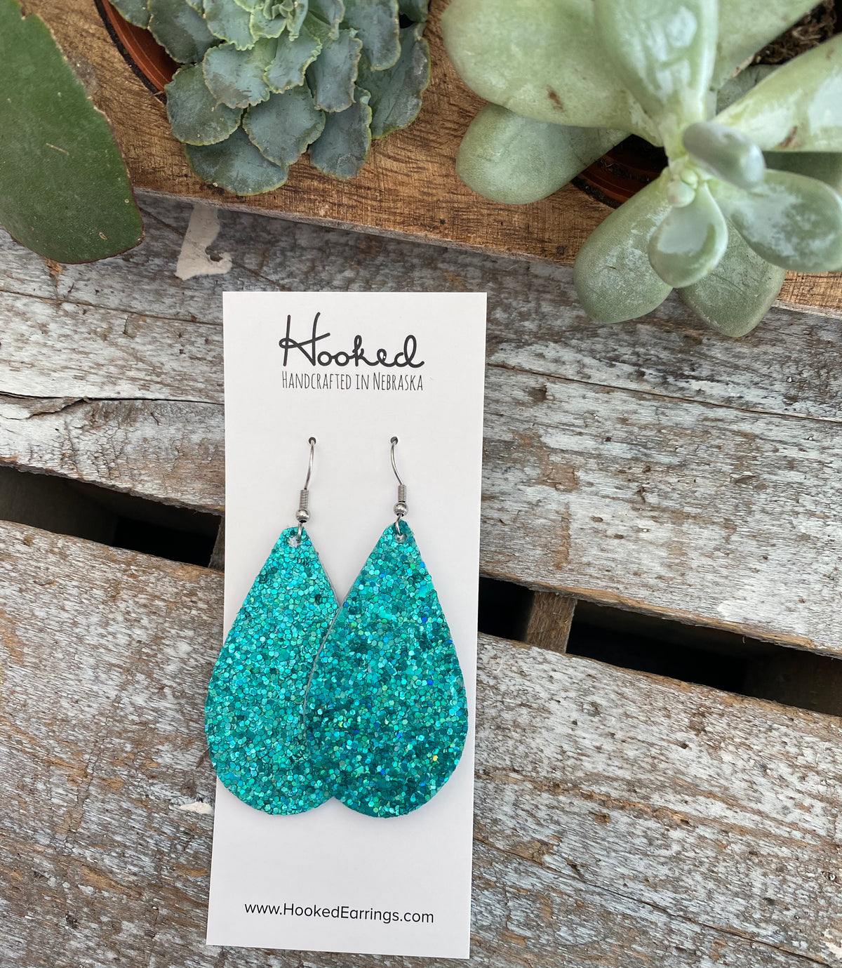 Iridescent Aquamarine Glitter Teardrops - Medium