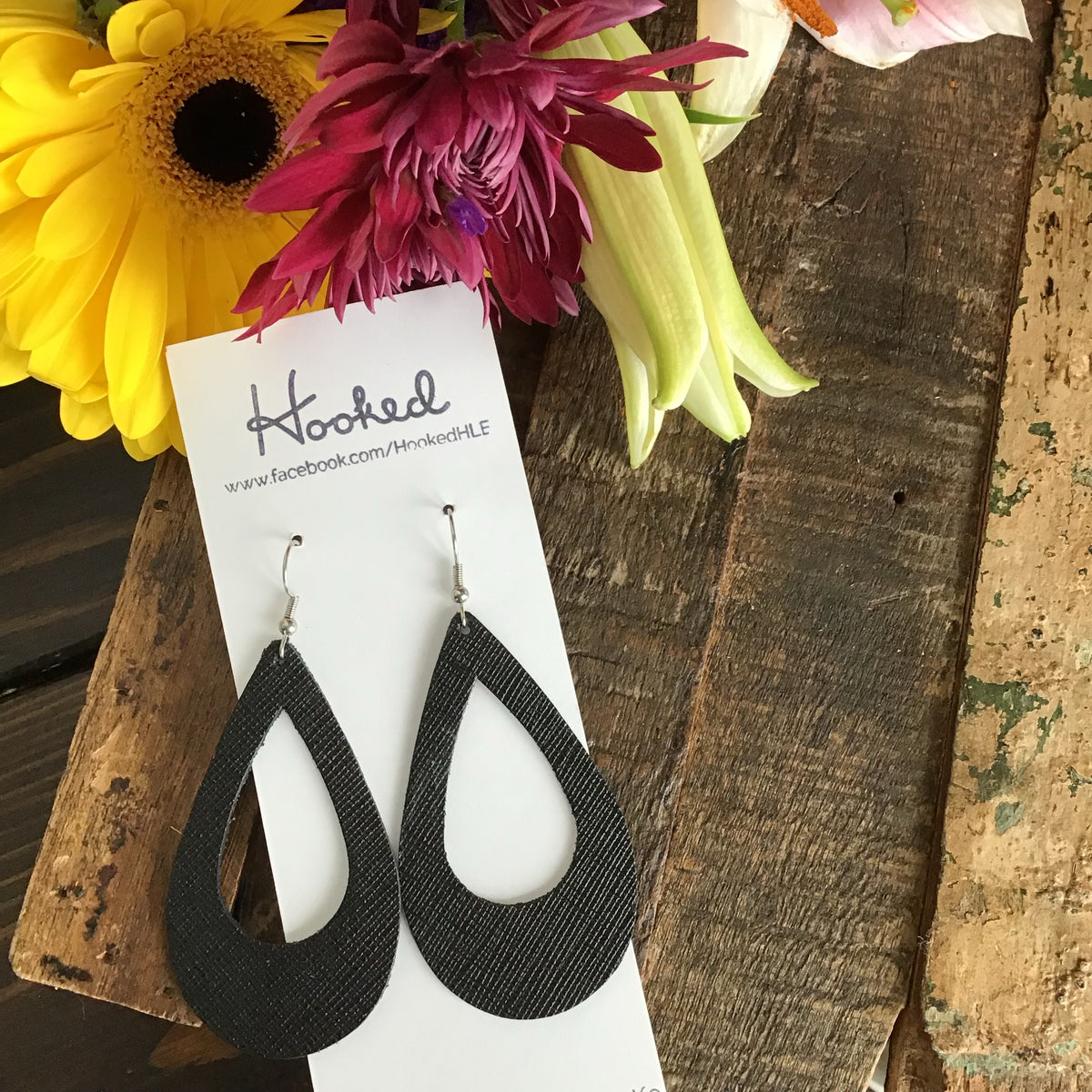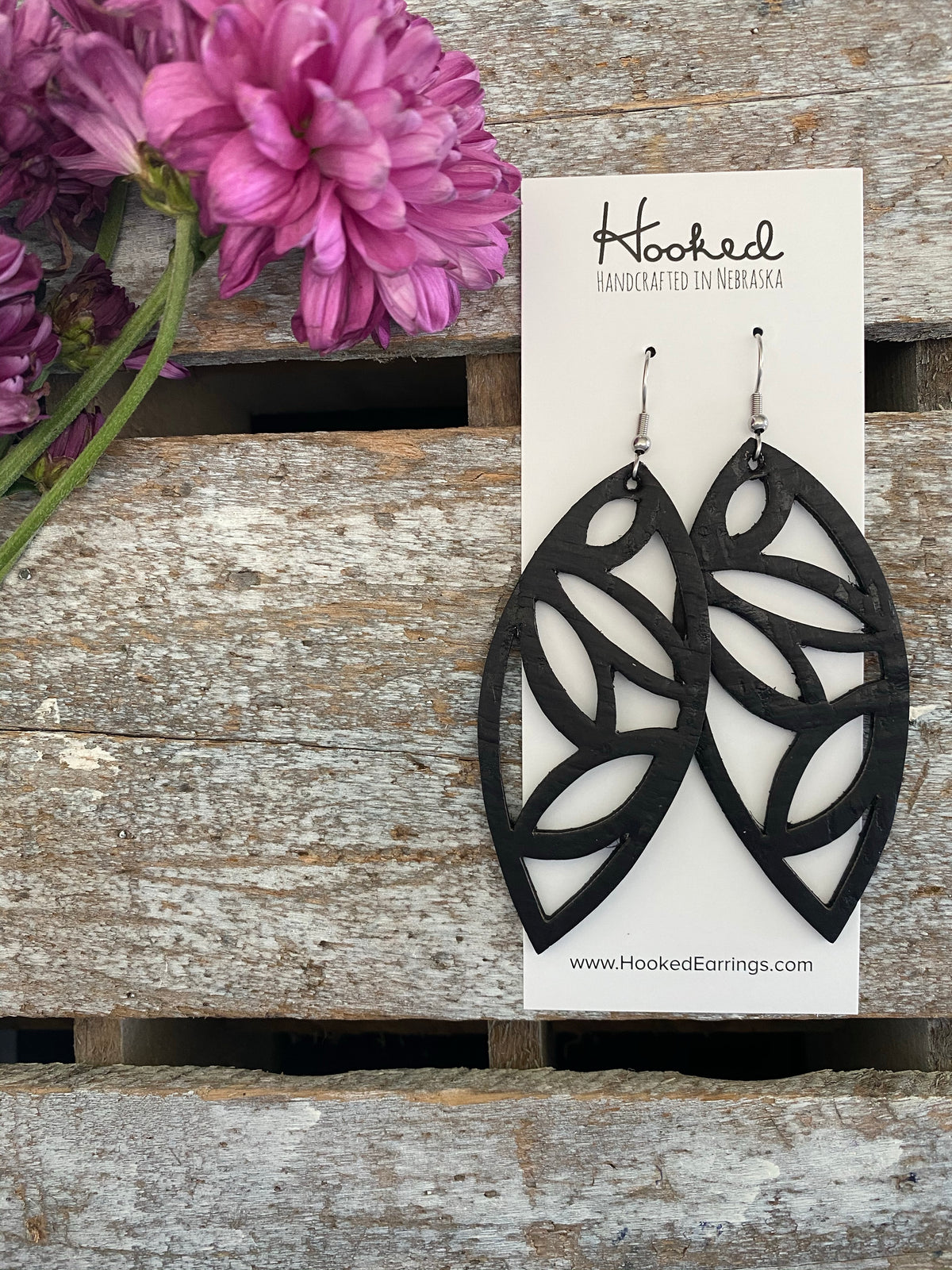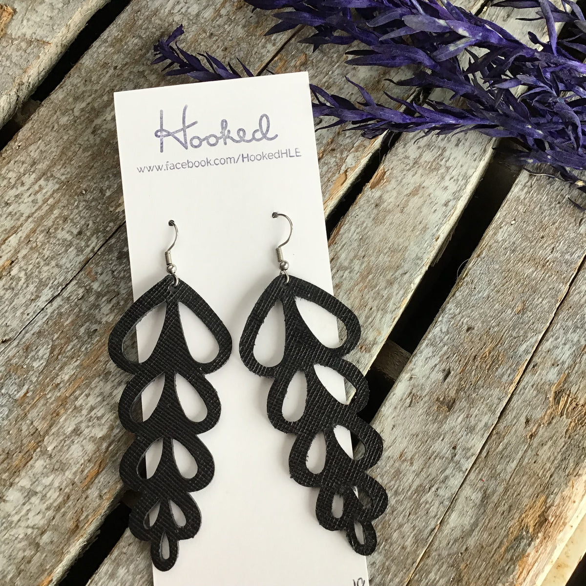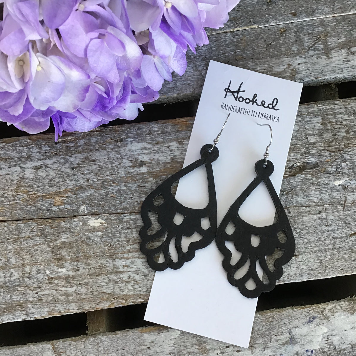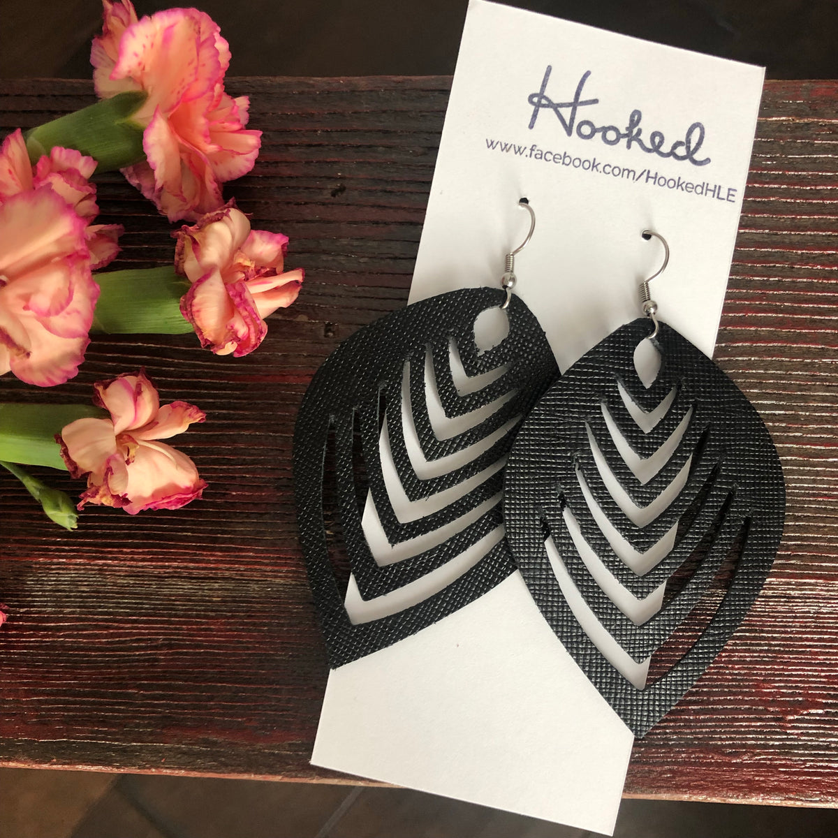 Jet Black Rattan Diamond Cutout Earrings - Waterproof, Pool Ready