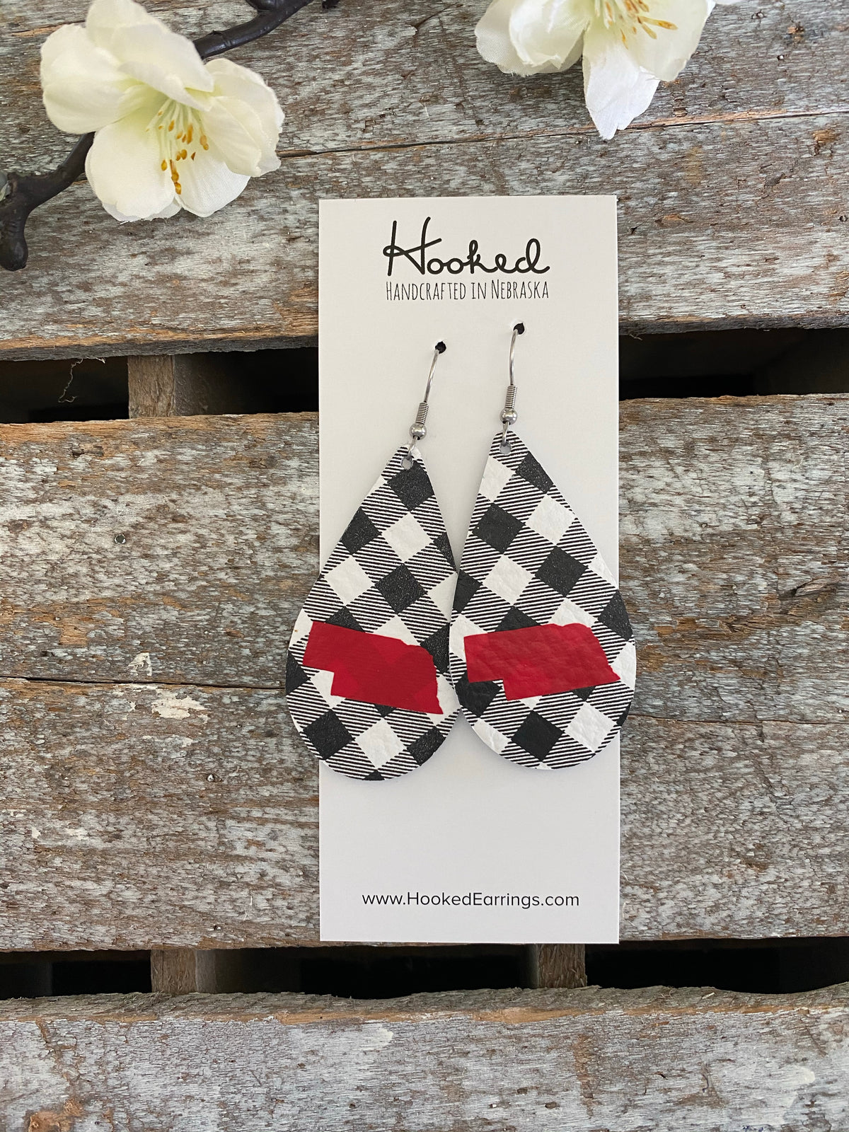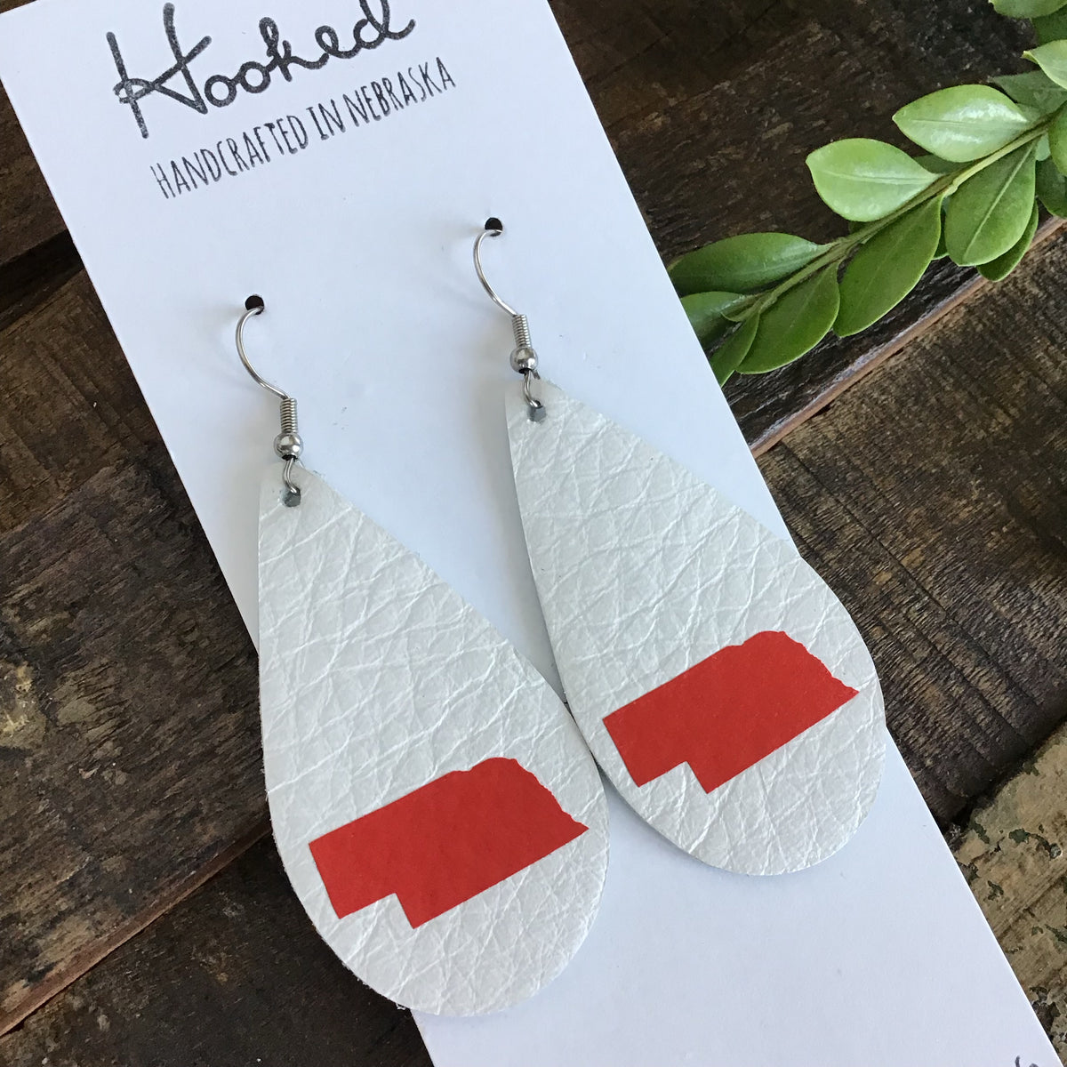 Nebraska State Pride Teardrops in White & Black Buffalo w/Red- Medium