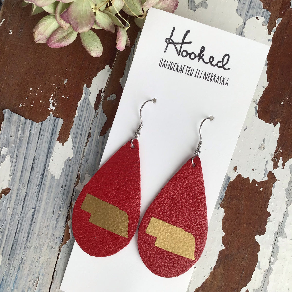 Nebraska State Pride Teardrops in Red/Gold - Medium