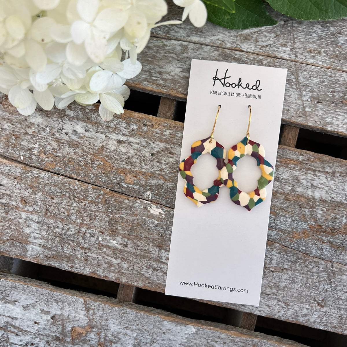 Quatrefoil Cutout Earrings in Fall Mosaic