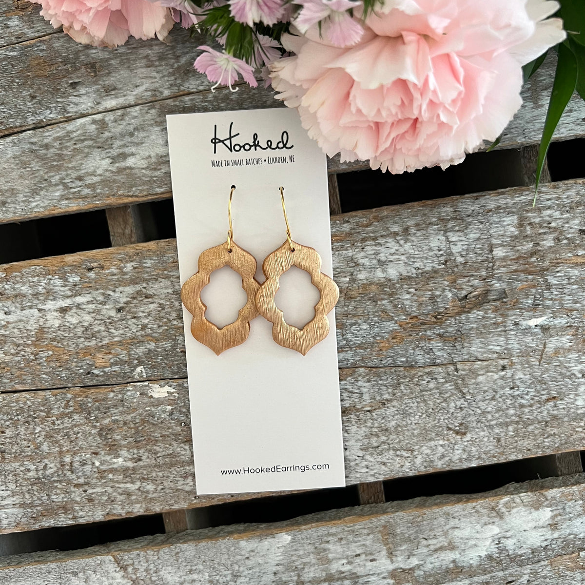 Quatrefoil Cutout Earrings in Brushed Metallic Gold
