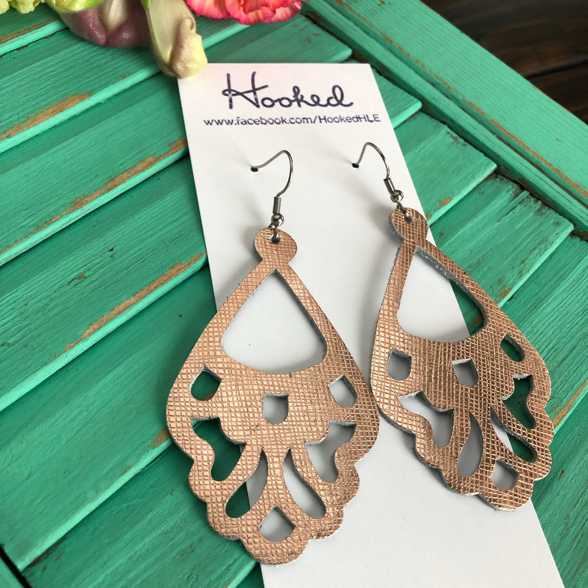 Quatrefoil Cutout Earrings in Pink & Aqua