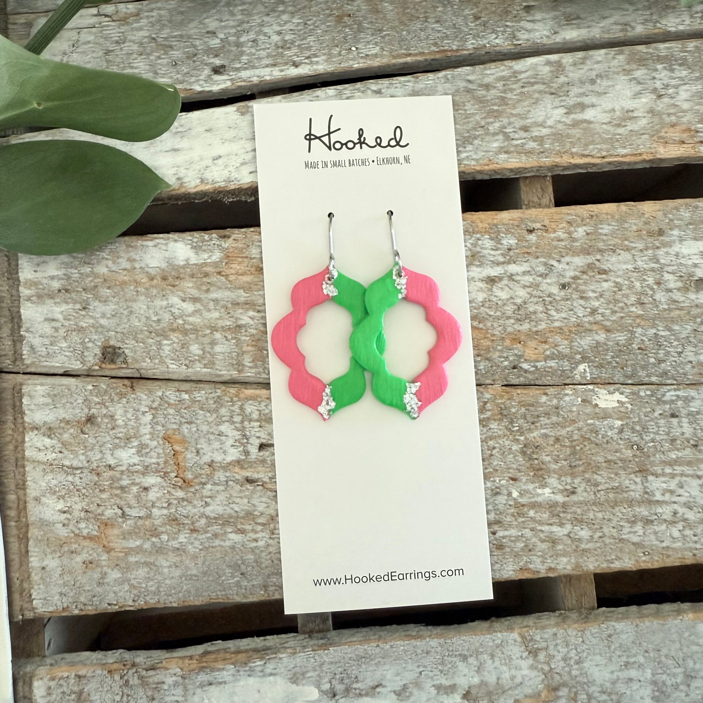 These Pink and Green Quatrefoil Cutout Earrings are wickedly magical, with silver accents that add a touch of whimsy. The pink and green color combo is sure to make a statement, making these earrings a playful addition to any outfit. Eye-catching and unique, these earrings are a must-have for any fashionista.