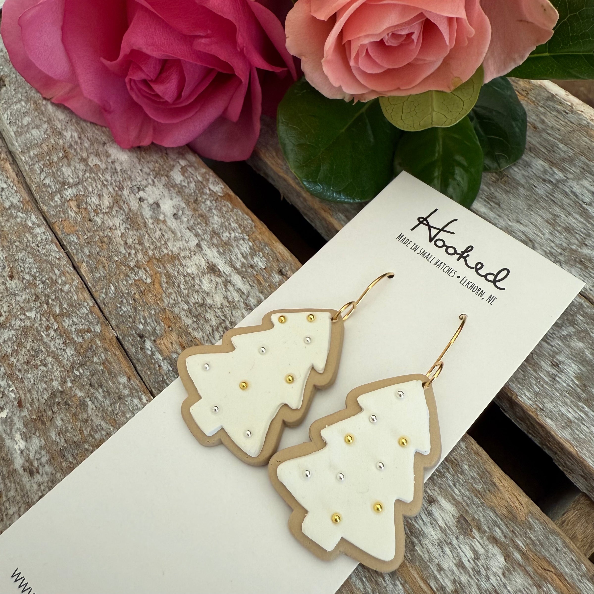Rock around the Christmas tree with these sweet and festive earrings that look like delicious holiday cookies. Available in two colors! The white frosted design has a golden stainless steel hook, the green frosted design has a shiny silver stainless steel hook (want your hooks switched? No problem, just add an order note and message me).