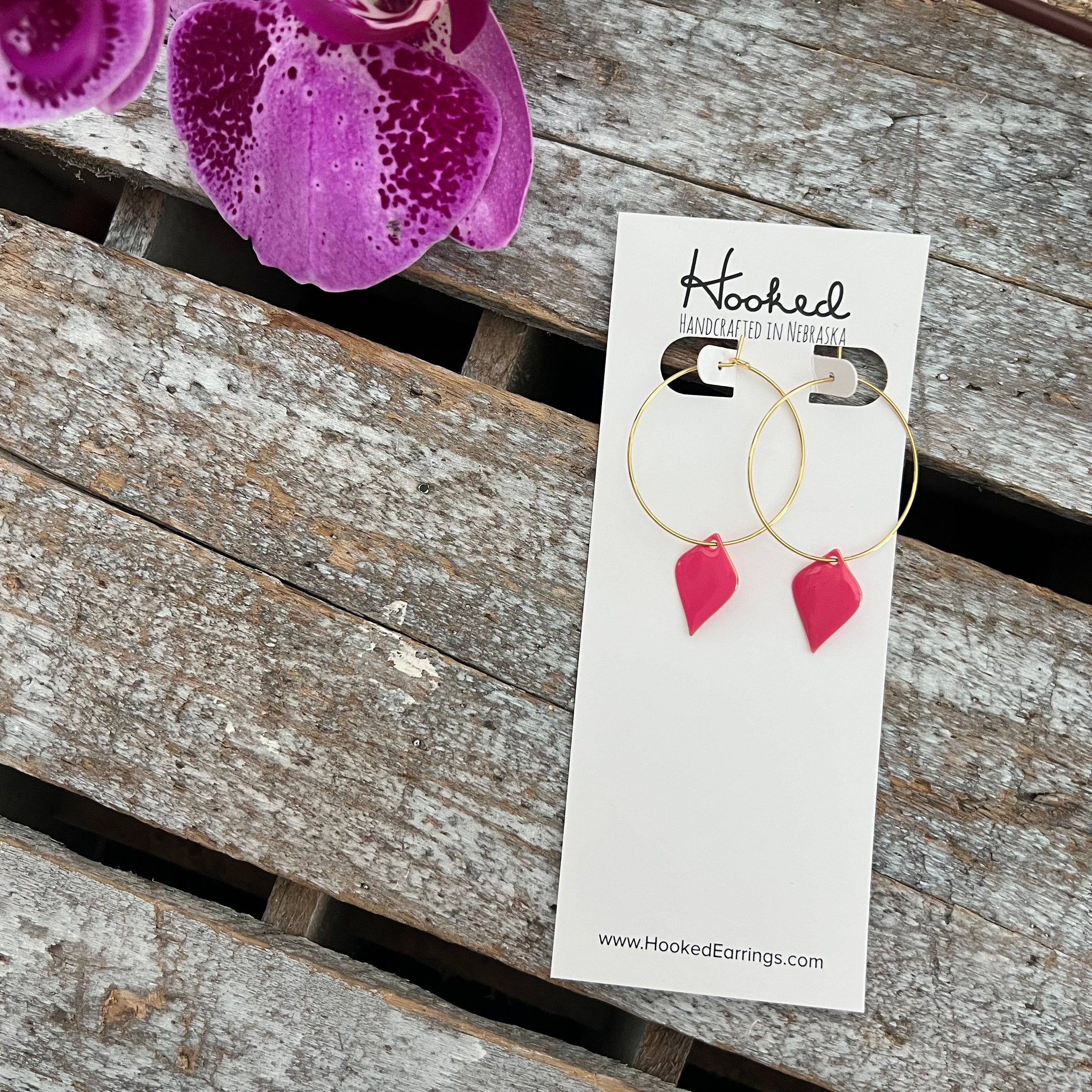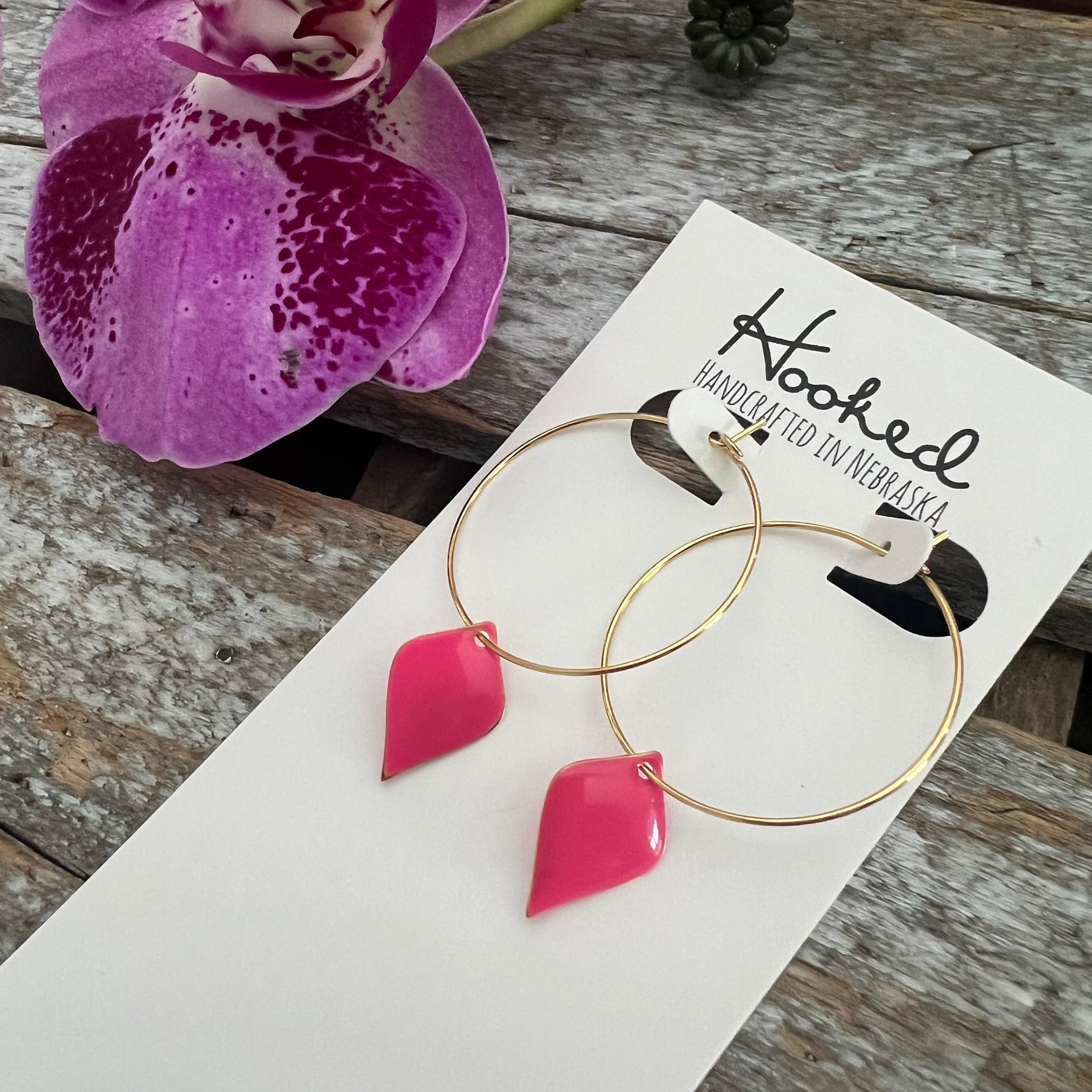 Stunning simplicity, timeless beauty. 😍 These colorful, tiny petals are suspended from a high quality, 18k gold plated stainless steel hoop