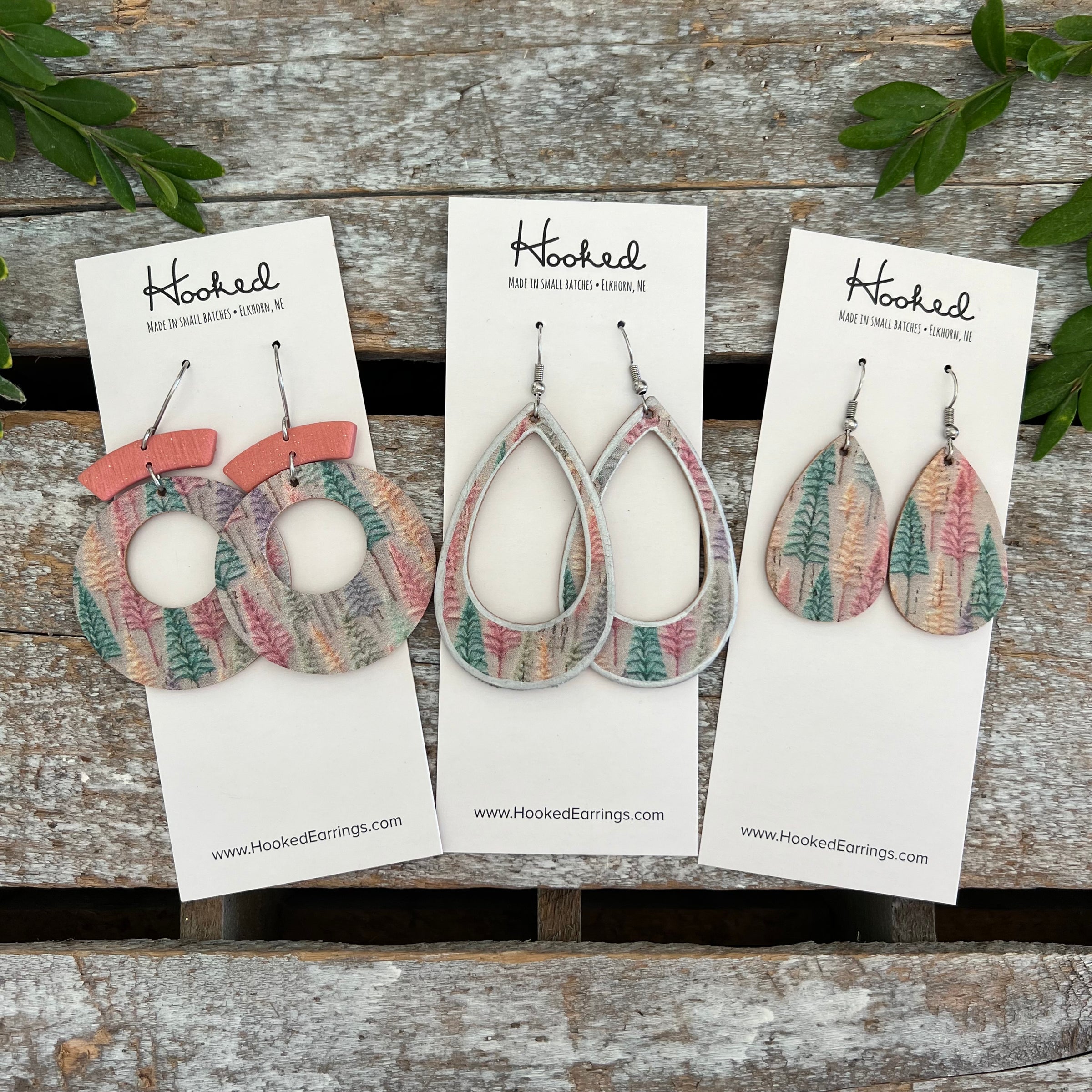 These Enchanted Forest Teardrop Earrings are a delicate and exclusive accessory with a unique aesthetic. Adorned with stunningly detailed “embroidered” trees in delightful shades of pastels against a pale gray neutral background, they are a truly beautiful choice. This design has been hand-edged in silver paint to accentuate the print
