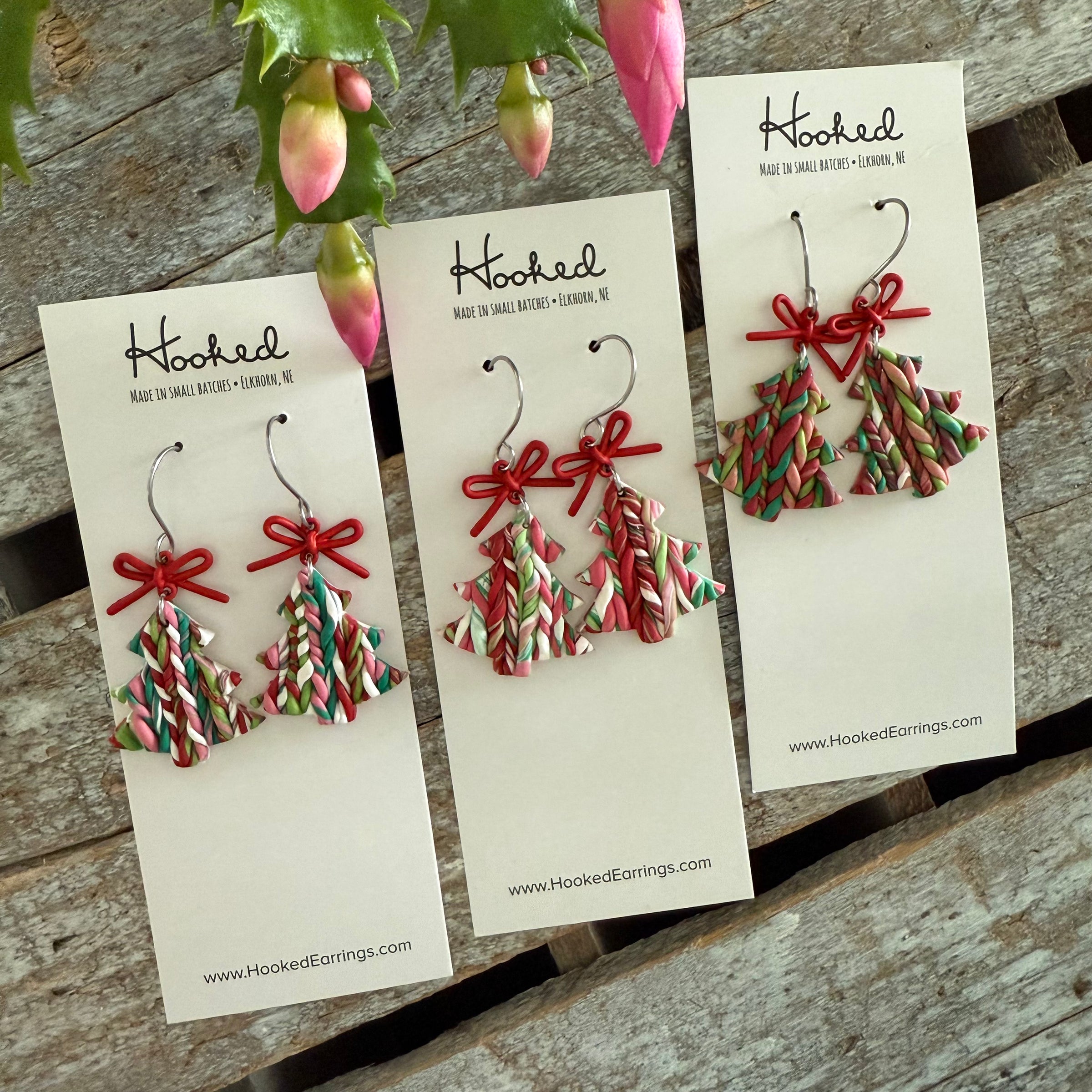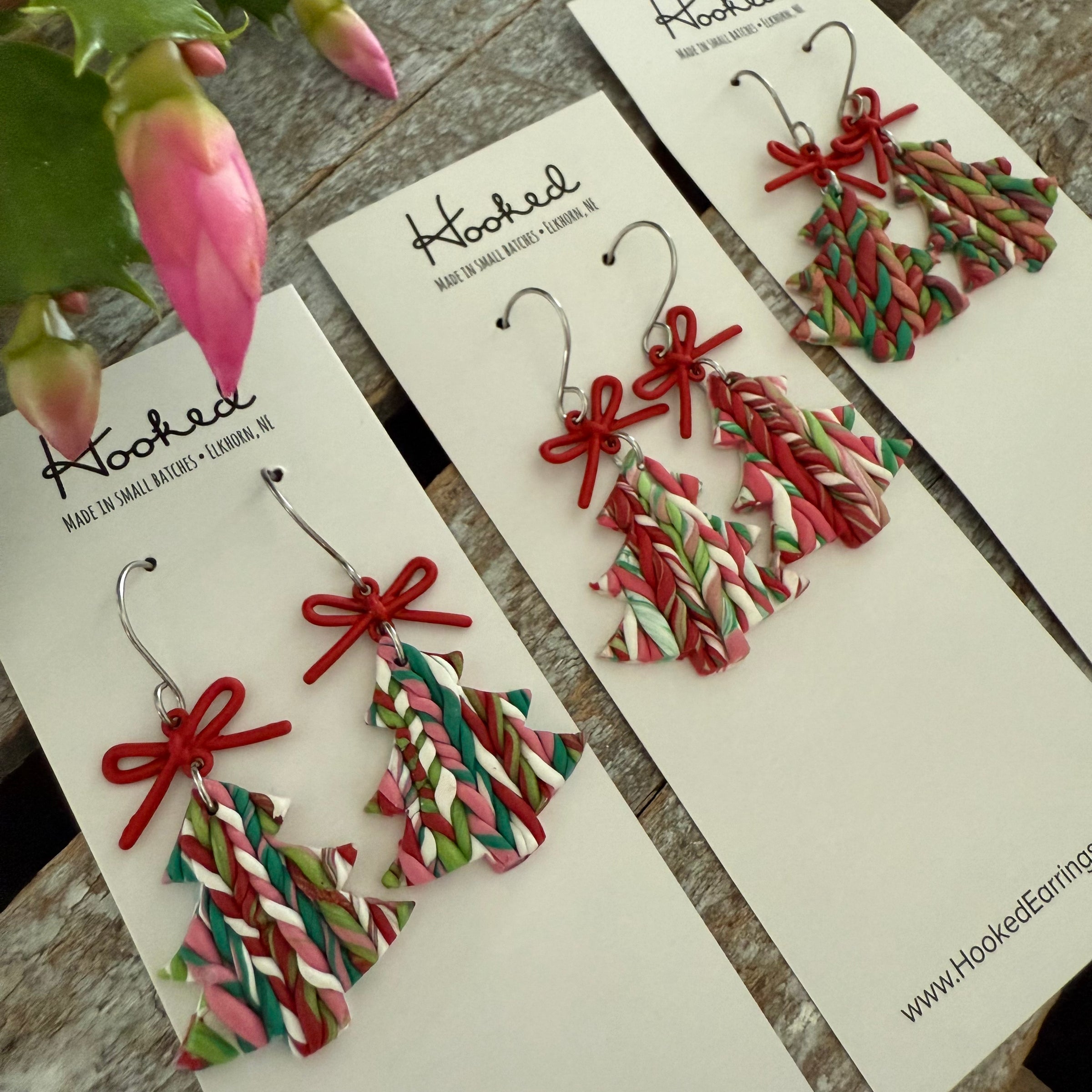 You could never accuse these sweater tees of being ugly, but they definitely are funky! A fun assortment of red, pink, green, and white clay is hand twisted into a knit sweater pattern. Topped with a beautiful red bow! The color arrangement in each design will vary significantly; please see photos as an example.