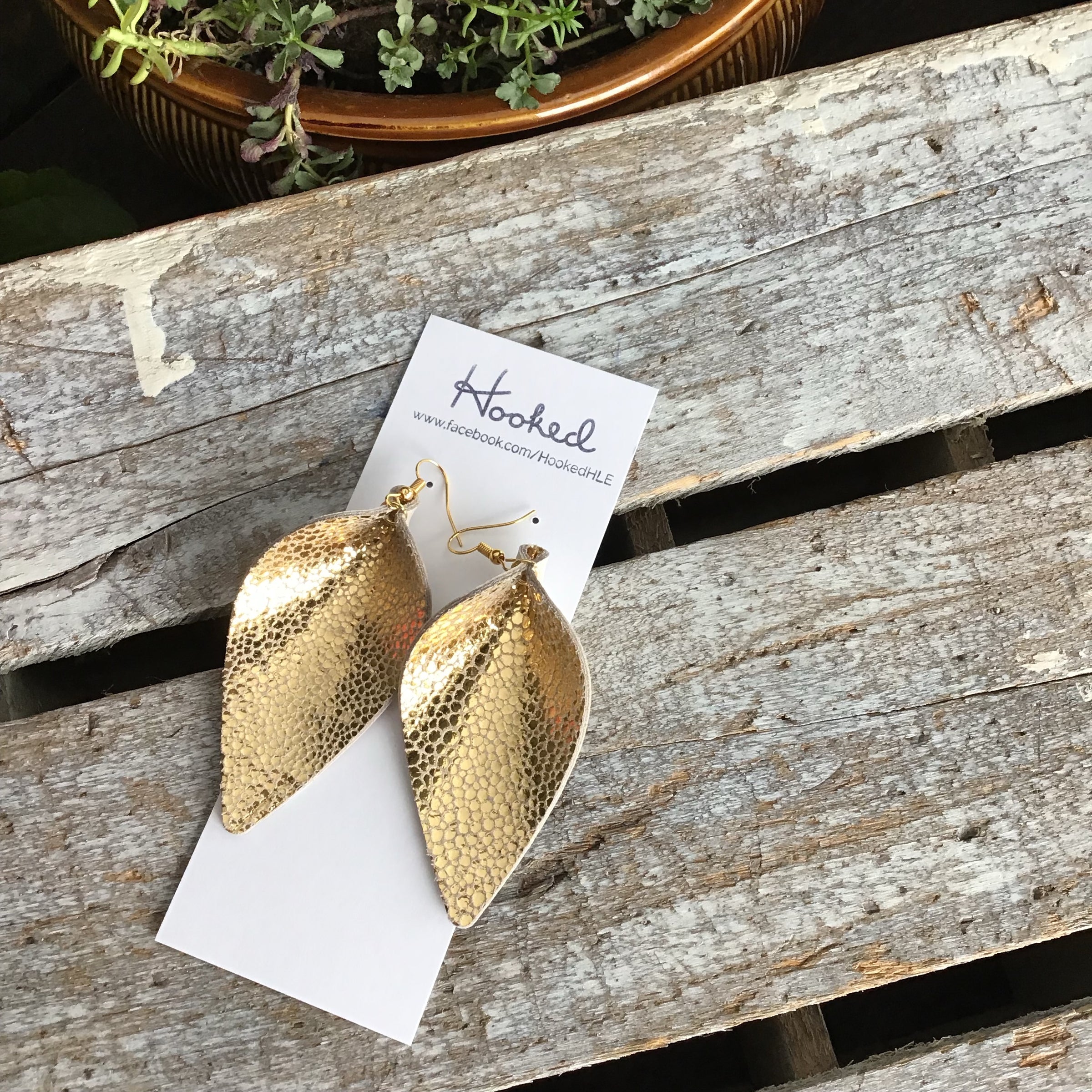 This golden leather has an stunning shimmer... the earrings are so sparkly that they almost look “wet”.
