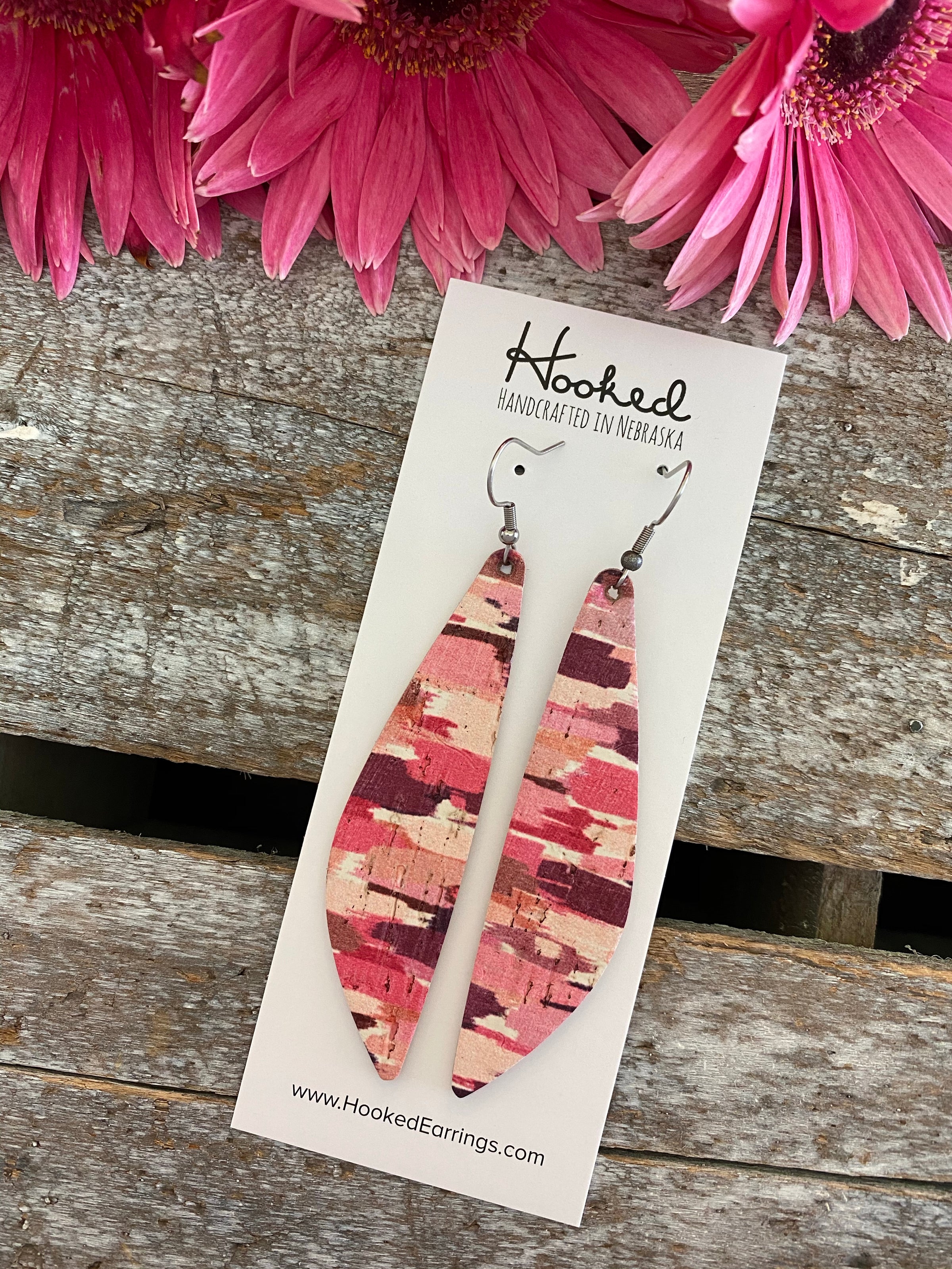 Birch cork with streaks of colors you’d find in a blush palette - various pinks, blush, red, and burgundy. Each cut is different, so color placement will vary.
