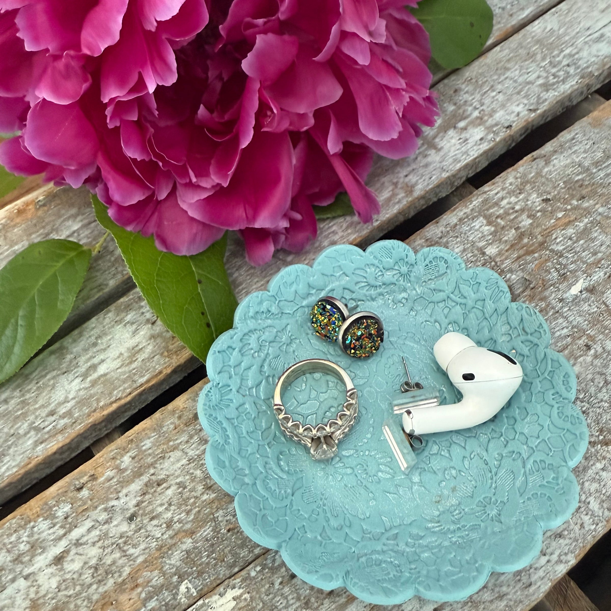 Never lose track of your small valuables again with our Scalloped Ring Dish! This versatile dish is perfect for storing not just rings, but also AirPods, loose change, earrings, hair accessories, necklaces and bracelets, keys, paper clips, and more. Keep your belongings organized and easily accessible in one stylish and compact place.