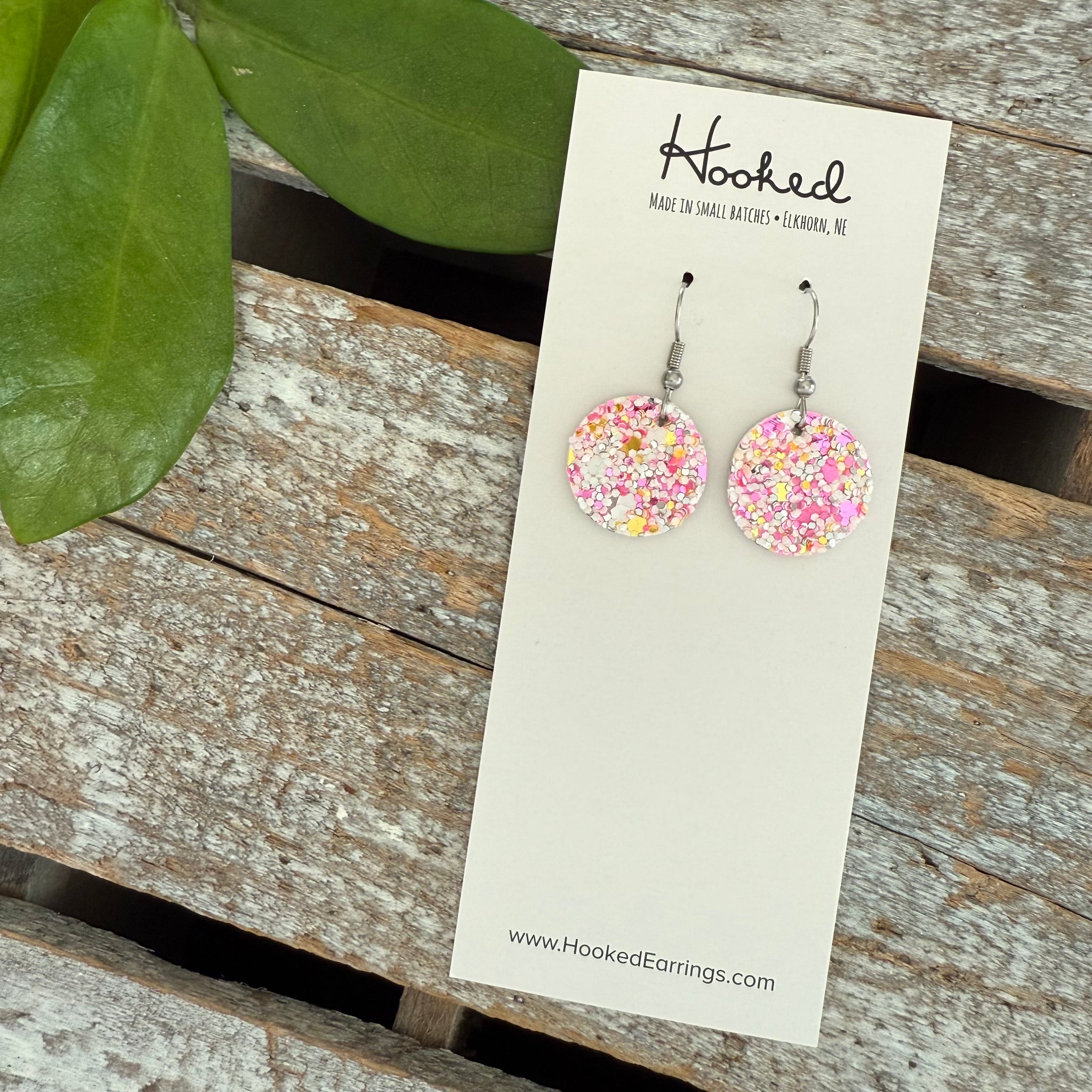 Minis are the smallest leather earring size and are .75 inches long not including the hook. Made with glitter material, genuine leather, and hypoallergenic stainless steel hooks. The material is backed with a sturdy leather to ensure each design holds its shape.